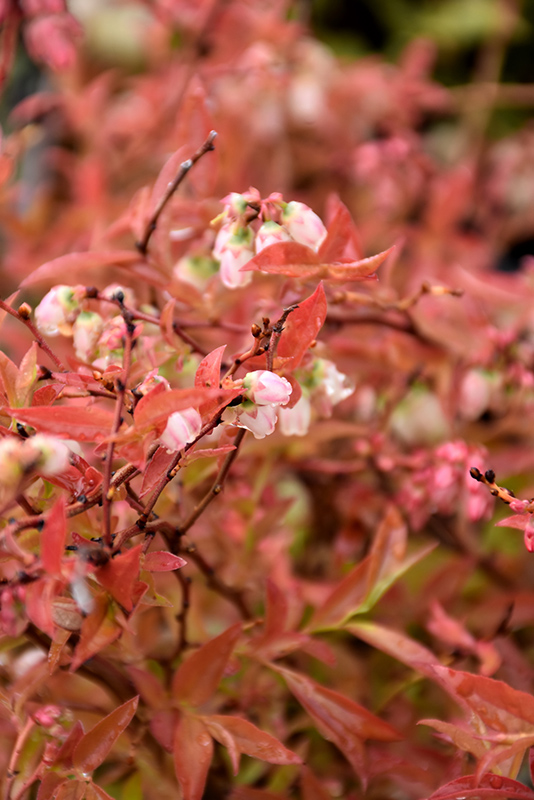 Burgundy Lowbush Blueberry features dainty clusters of white bell-shaped flowers hanging below the branches in mid spring. It has grayish green deciduous foliage which emerges burgundy in spring. The oval leaves turn an outstanding scarlet in the fall. It features an abundance of magnificent blue berries in mid summer.