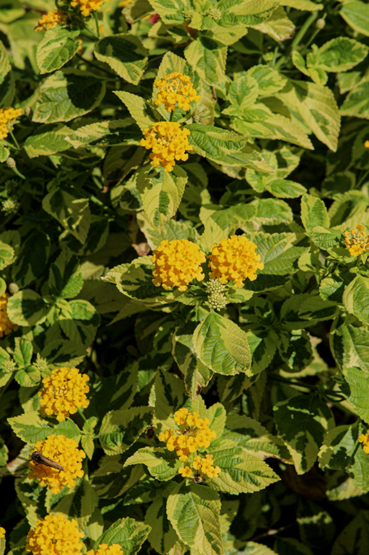 Samantha Lantana features showy cymes of yellow flowers at the ends of the branches from early summer to mid fall. Its attractive tomentose pointy leaves remain dark green in color with showy creamy white variegation throughout the year.