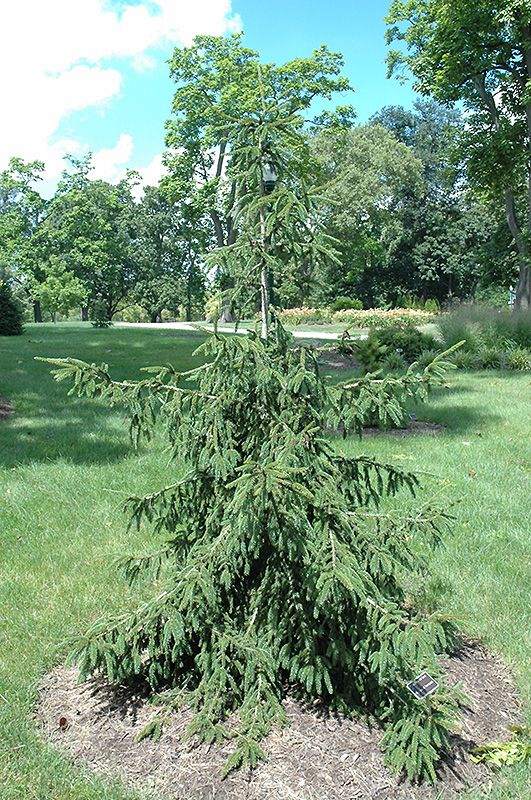 Gold Tipped Oriental Spruce is primarily valued in the landscape for its distinctively pyramidal habit of growth. It has attractive dark green evergreen foliage which emerges chartreuse in spring. The needles are highly ornamental and remain dark green throughout the winter. The rough brown bark adds an interesting dimension to the landscape.