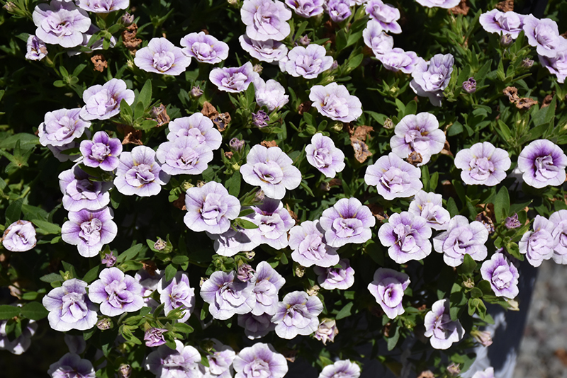 MiniFamous® Uno Double PlumTastic Calibrachoa is smothered in stunning double lilac purple trumpet-shaped flowers with plum purple overtones at the ends of the stems from late spring to early fall. Its small pointy leaves remain green in color throughout the season.