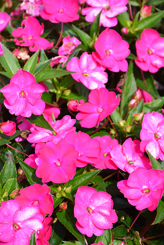 SunPatiens® Vigorous Rose Pink New Guinea Impatiens features bold rose round flowers at the ends of the stems from mid spring to early fall. Its pointy leaves remain dark green in color throughout the season.