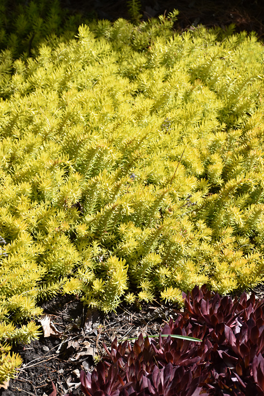 Angelina Stonecrop will grow to be about 8 inches tall at maturity, with a spread of 12 inches. When grown in masses or used as a bedding plant, individual plants should be spaced approximately 10 inches apart. Its foliage tends to remain low and dense right to the ground. It grows at a fast rate, and under ideal conditions can be expected to live for approximately 10 years. As an herbaceous perennial, this plant will usually die back to the crown each winter, and will regrow from the base each spring. Be careful not to disturb the crown in late winter when it may not be readily seen!