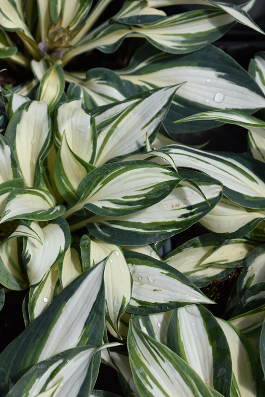 High Society Hosta features dainty spikes of lavender tubular flowers rising above the foliage from mid to late summer. Its attractive small textured oval leaves remain white in color with showy bluish-green variegation throughout the season.