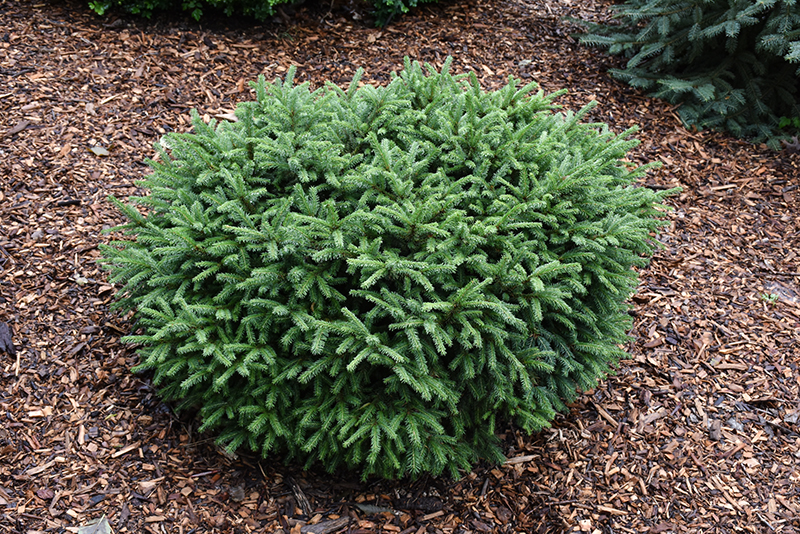 Pumila Norway Spruce is a dwarf conifer which is primarily valued in the landscape or garden for its ornamental globe-shaped form. It has dark green evergreen foliage which emerges light green in spring. The needles remain dark green throughout the winter.